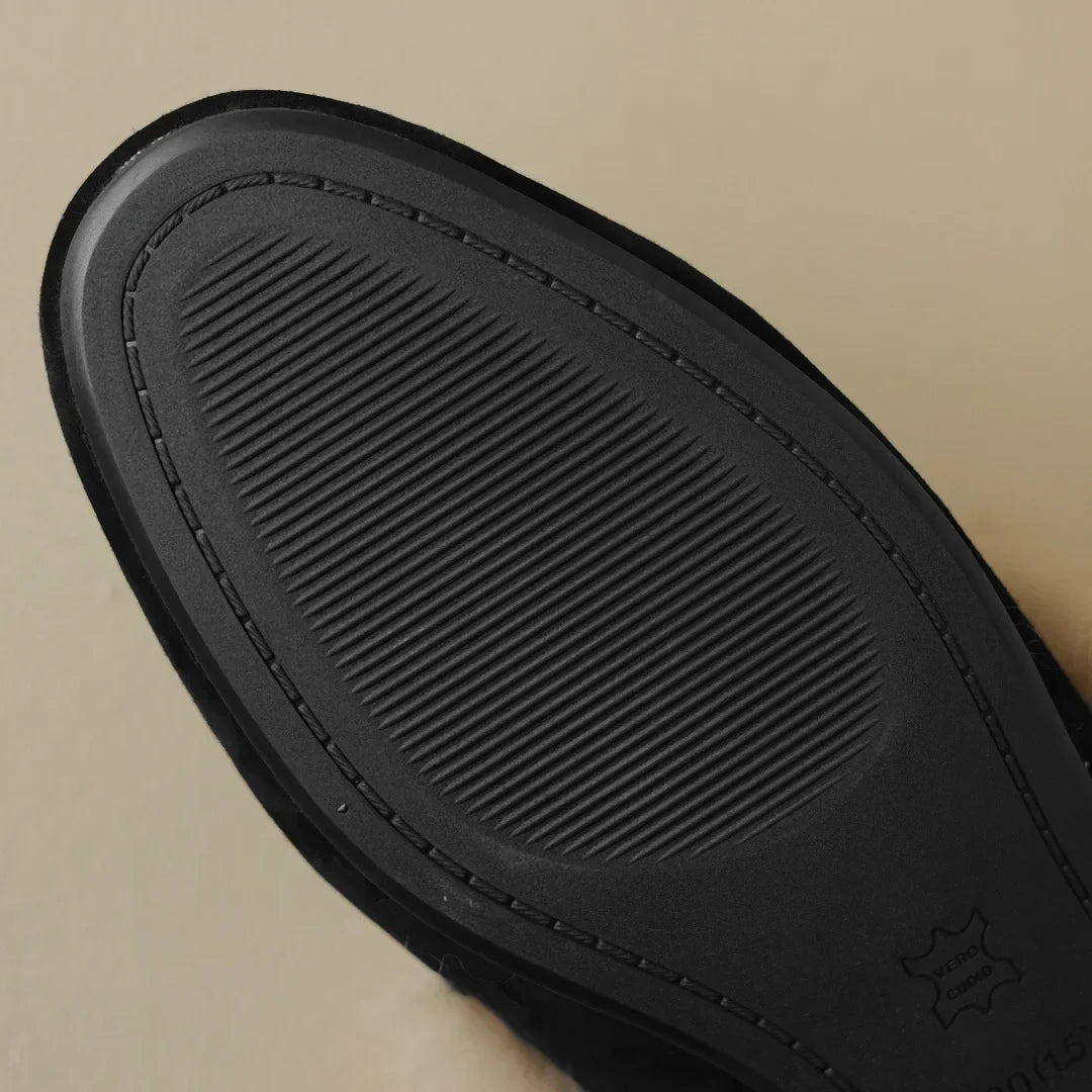 A luxuriously soft exterior meets a plush, cosy interior to deliver warmth and indulgent comfort with every step. The thoughtfully shaped silhouette features a structured square toe and clean panelling, offering a refined look with subtle character—never overstated. Ideal for chilly mornings, quick errands, or elevating casual layers with something polished yet relaxed.